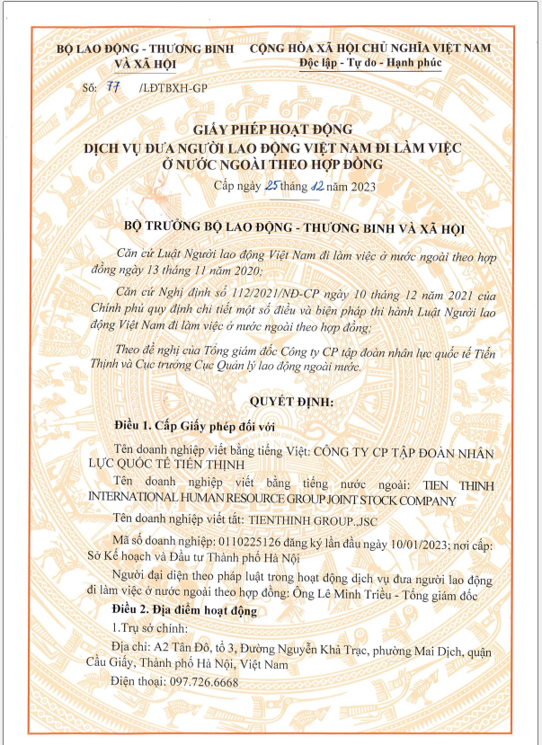 CÔNG TY CP TẬP ĐOÀN NHÂN LỰC QUỐC TẾ TIẾN THỊNH với dịch vụ xin Visa, tư vấn du học Nhật, Đài Loan, Châu Âu và Trung Đông giá rẻ với phong cách làm việc chuyên nghiệp, kinh nghiệm lâu năm, tư vấn tận tình, tỷ lệ Visa cao. Xuất phát từ việc đất nước Việt Nam chúng ta có hơn bốn nghìn năm văn hiến, Người Việt chúng ta rất hiếu học, và từ đó có những con người làm nên những điều vĩ đại tầm cỡ thế giới trong thời chiến và thời bình. Nay đang là thời bình, Thế kỷ này là kỷ nguyên của tri thức, vì vậy tương lai của đất nước chúng ta phụ thuộc vào thế hệ trẻ, thế hệ tương lai của đất nước.